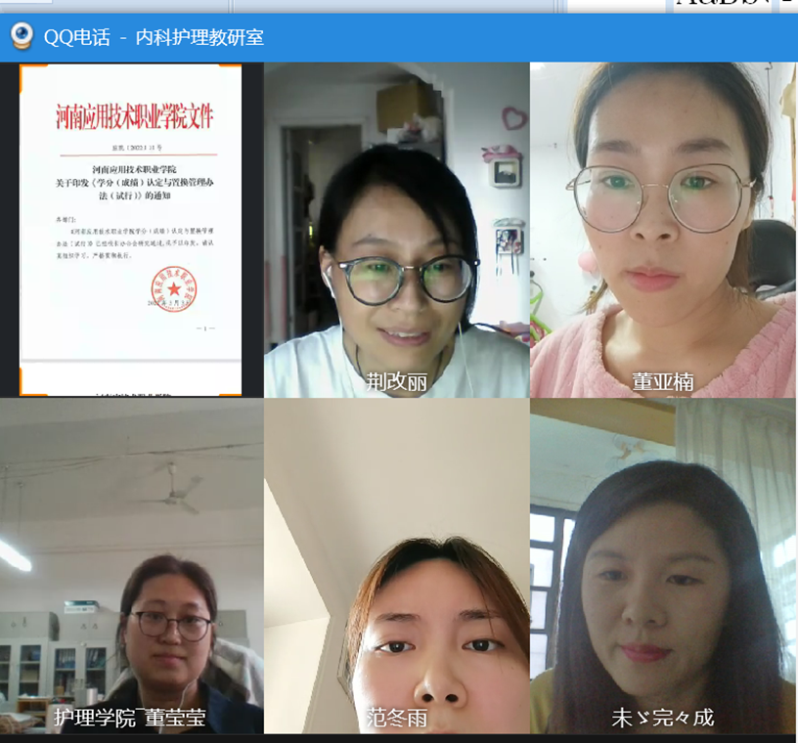 随后,护理学院以教研室为单位组织召开线上学习讨论会议。老师们纷纷表示,通过学习有关学分置换的政策和文件应该在平时上课中及时传达给学生,提高学生的学习和参与活动的积极性。同时鼓励学生参与讨论文件的修订,提供合理建议,促进学生个性化和全面发展。我们将耐心给予学生在选课和“1+X”证书培训、竞赛备赛等方面的指导,确保学分制试行的顺利推进。