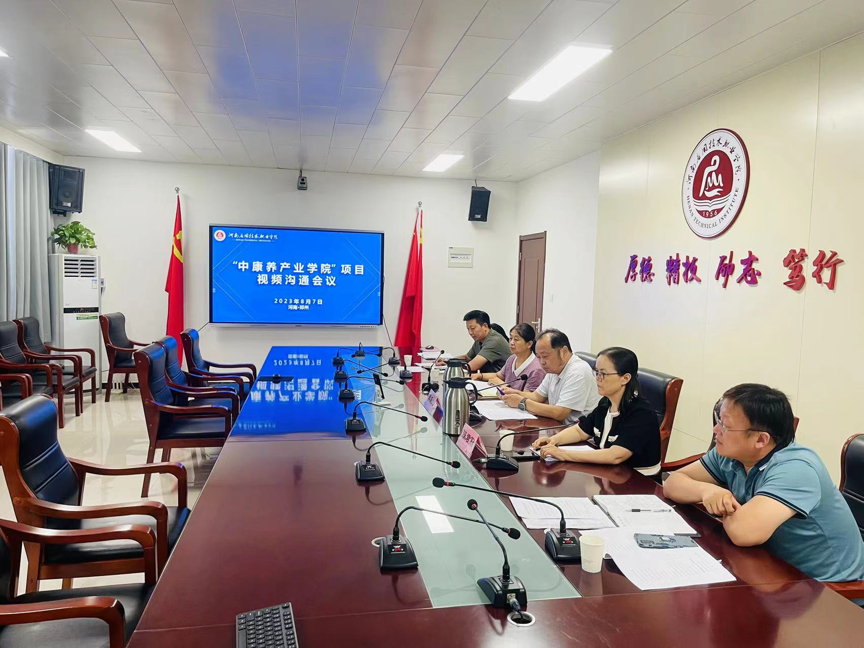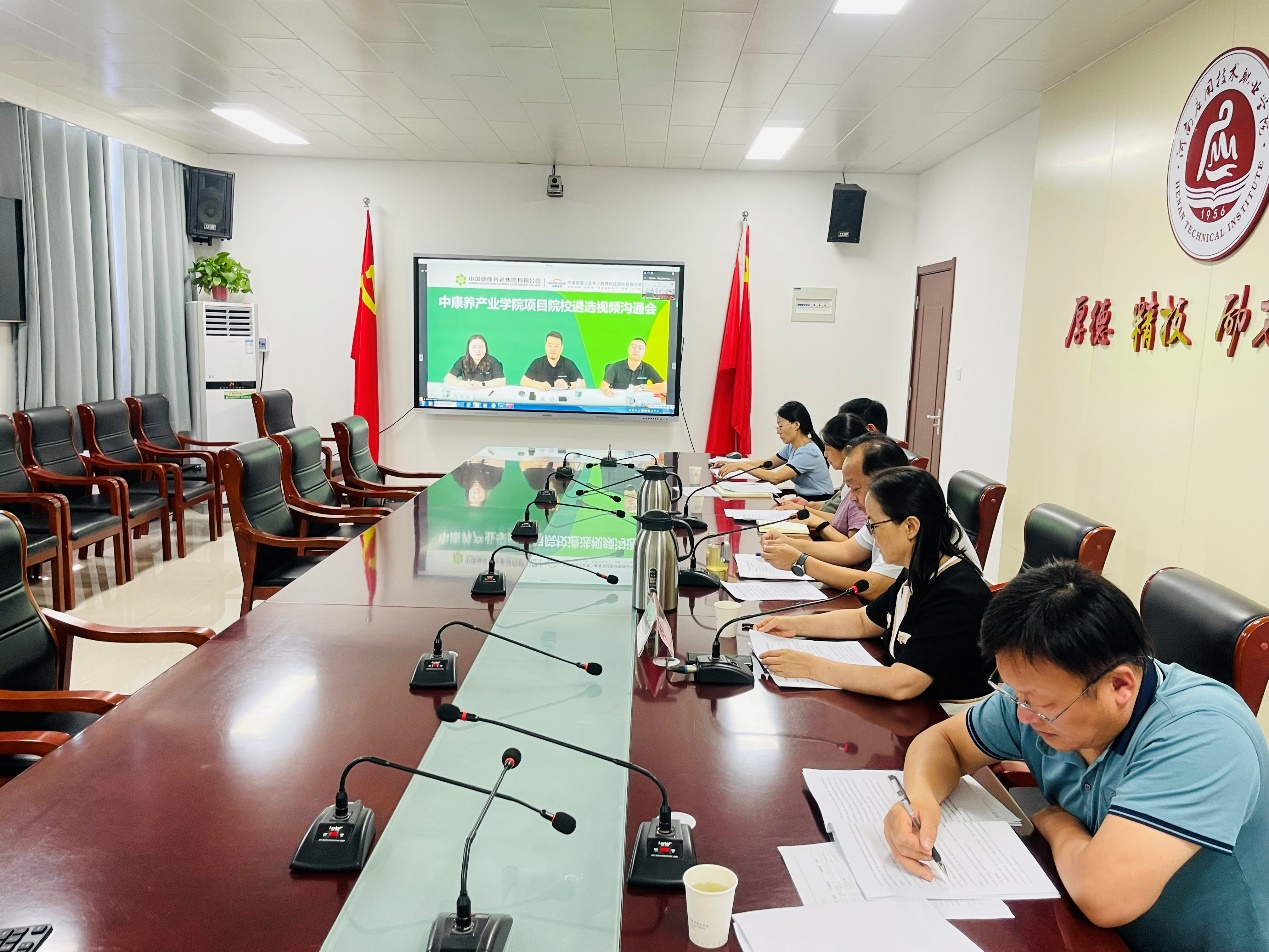 2023年8月7日下午,2026世界杯与中国健康养老集团研究院、中德诺浩(北京)教育科技股份有限公司就“中康养产业学院”共建项目召开了视频沟通会。中国康养研究院相关人员、中德诺浩〈北京)教育科技股份有限公司相关人员、河南应用技术职业学院校长薄新党、副校长陈君丽、教务处处长赵扬、校企合作与就业处处长李海富、护理学院党总支书记杨明杰、护理学院院长王风云、副院长温晓丽、护理学院教务办主任窦纪梁、康复治疗技术专业负责人荆改丽、老年保健与管理专业负责人柳超参加了会议。