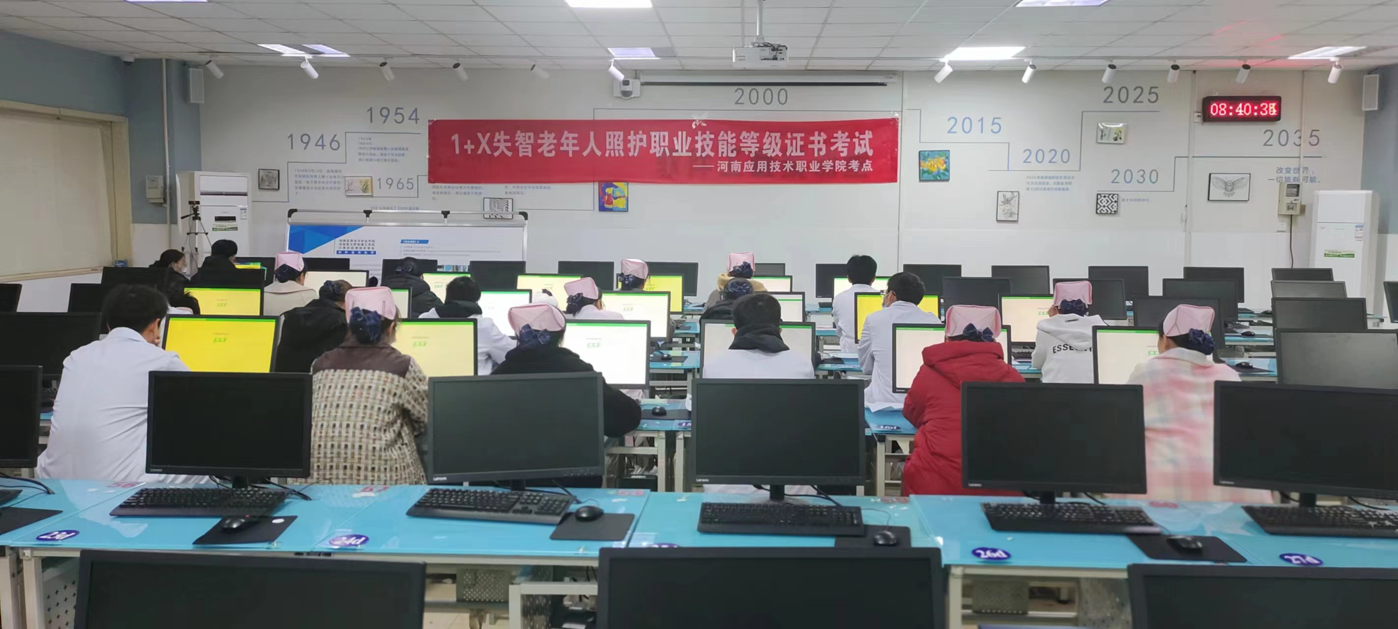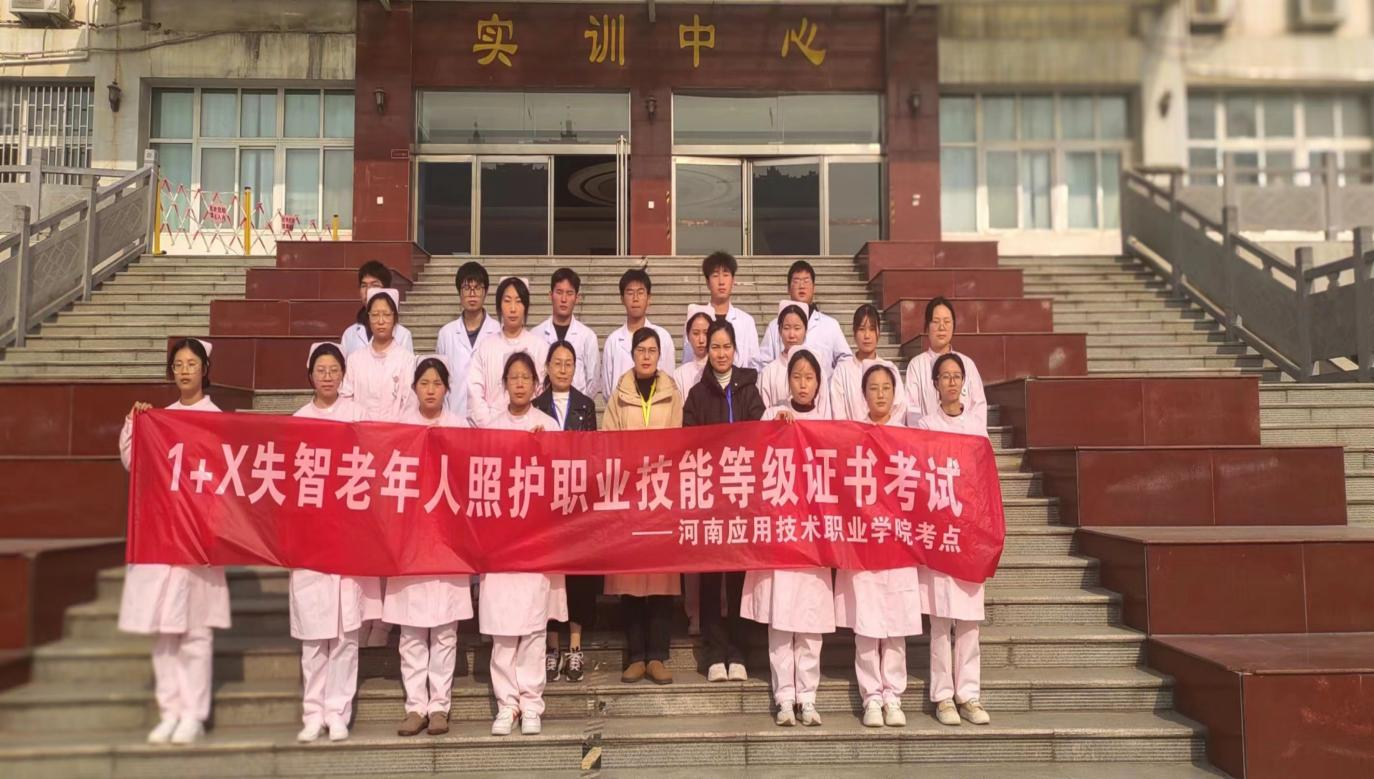 2023年12月9日,河南应用技术职业学院护理学院负责承接的教育部“1+X”失智老年人照护职业技能等级证书考试在2026世界杯实训中心顺利举行。经过认真选拔、精心组织培训、严格考核考评等工作,学院顺利组织护理专业共19名学生参加“1+X”失智老年人照护职业技能等级证书考试。