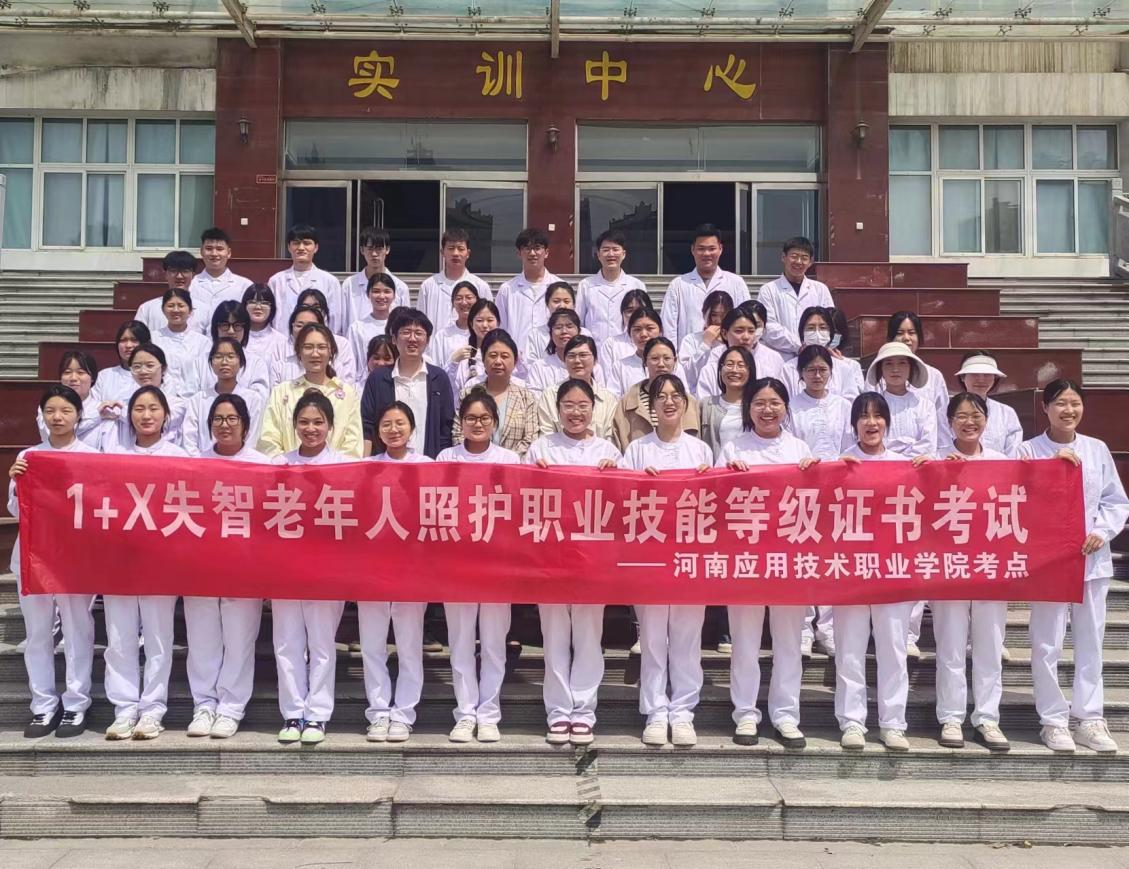 2024年4月20日,河南应用技术职业学院护理学院负责承接的教育部“1+X”失智老年人照护职业技能等级证书考试在2026世界杯实训中心顺利举行。经过认真选拔、精心组织培训、严格考核考评等工作,学院顺利组织康复治疗技术专业共50名学生参加“1+X”失智老年人照护职业技能等级证书考试。