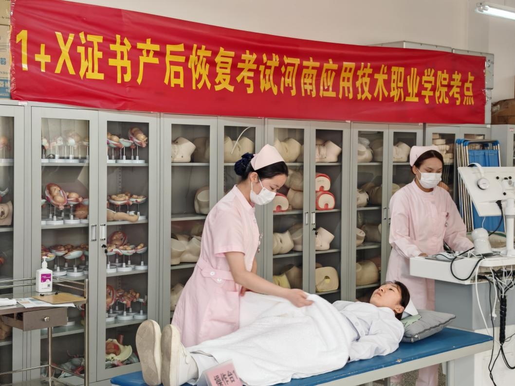2024年5月18日,河南应用技术职业学院护理学院承办的教育部1+X证书产后恢复考试顺利开展,本次共有44名护理及助产专业在校学生参加。