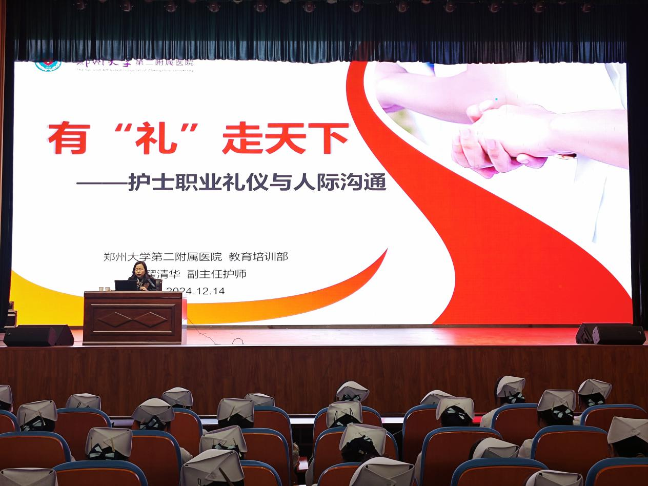 为提高护理专业2024级学生的职业礼仪与素养,12月14日下午,护理学院特邀请郑州大学第二附属医院教育培训部翟清华主任在学生活动中心成功举办了一场以“有‘礼’走天下”为主题的课程讲座。