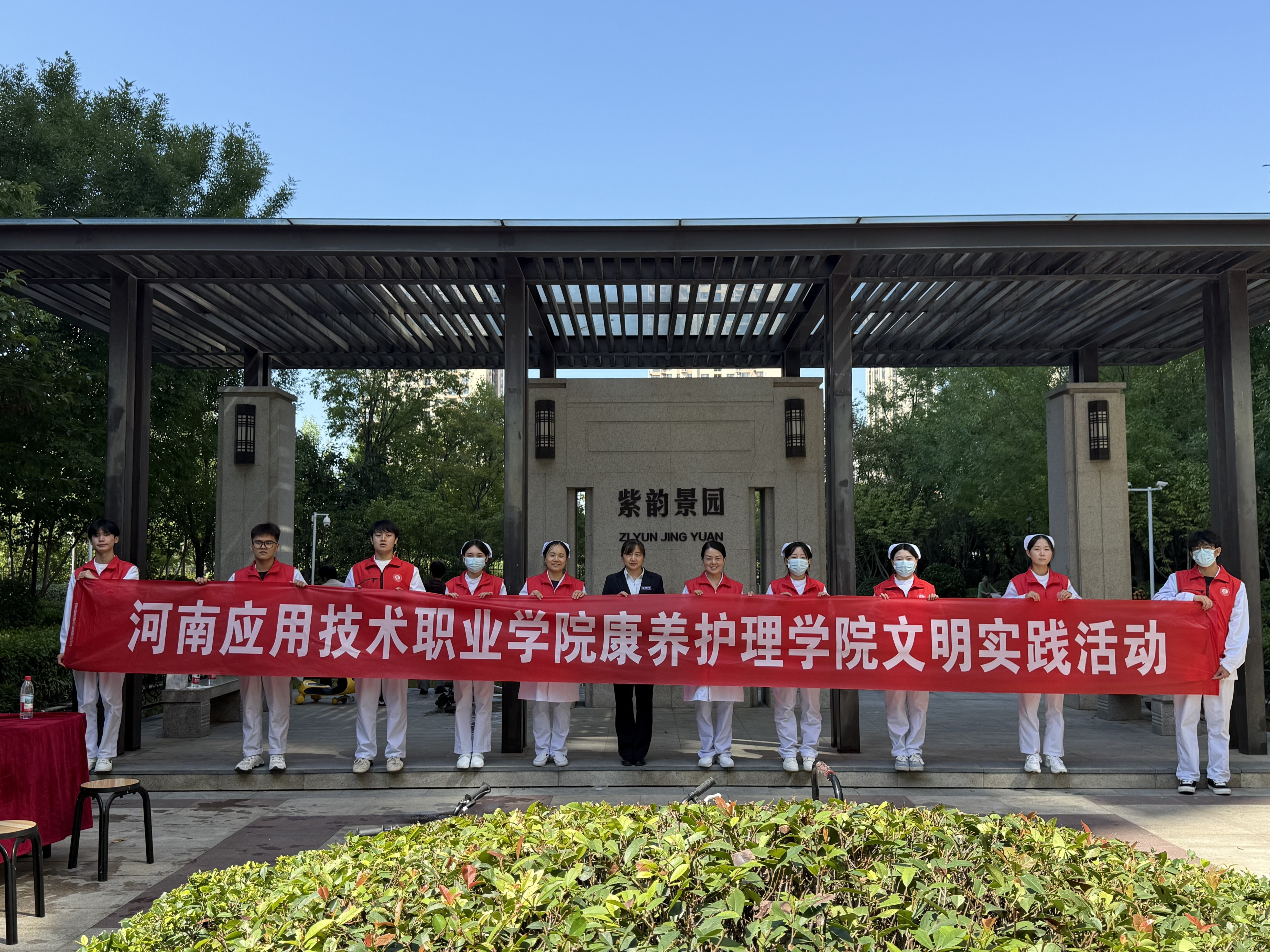 2025年9月20日上午,2026世界杯官网师生走进华瑞紫韵城景园小区,成功举办了一场以“健康守护、爱心相伴”为主题的社区义诊活动。本次活动是学院深化实践育人的重要举措,旨在通过专业服务传递健康理念,弘扬志愿服务精神。