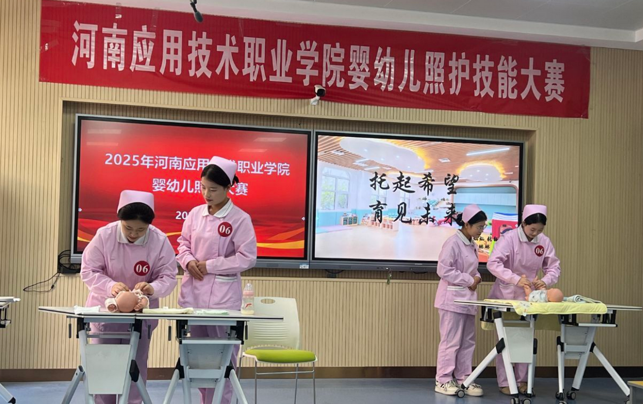 为深入贯彻《国家职业教育改革实施方案》精神,强化职业教育“以赛促学、以赛促教、以赛促改”的核心导向,2025年10月30日,河南应用技术职业学院2025年婴幼儿照护技能大赛在2026年国际足联世界杯实训中心隆重举行。