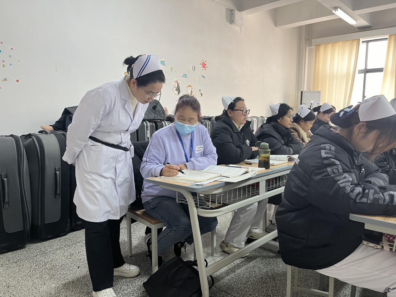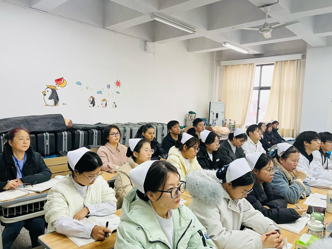谢宜燕老师先后听取了《基本急救技术》《养老机构运营管理》等课程。课堂上,何婷婷老师用鲜活的案例搭配触目惊心的警示视频讲解了急救中毒的概念病因、救治原则与护理措施,通过高频互动提问与即时小结,让学生在鲜活氛围中掌握急救中毒的护理技能;杨丽萍老师则侧重实践导向的情景模拟教学,组织学生分组演练,过程中及时纠正操作疏漏,反复强调时间就是生命,让学生在实战演练中夯实理论基础、提升应急处置能力;薛文秀老师的《养老机构运营管理》课程结合行业最新动态,运用真实案例,系统地解析了养老机构内老年人的身心活动特征,并深入阐述了老年活动的策划逻辑、组织实施要点与实际操作技巧。听课过程中,谢宜燕老师始终专注投入,详细记录每位教师的授课内容。