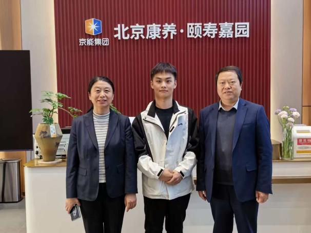 走进北京康养颐寿嘉园,学校一行深入养老服务一线,实地察看工作场景。颐寿嘉园负责人介绍了学校毕业生在园区的成长历程。校友周天航作为代表向母校老师分享了在京工作生活情况,字里行间流露出对母校悉心培养的深深感恩。副校长常新中勉励校友们立足岗位、精进技能,努力成长为养老服务领域的能工巧匠。