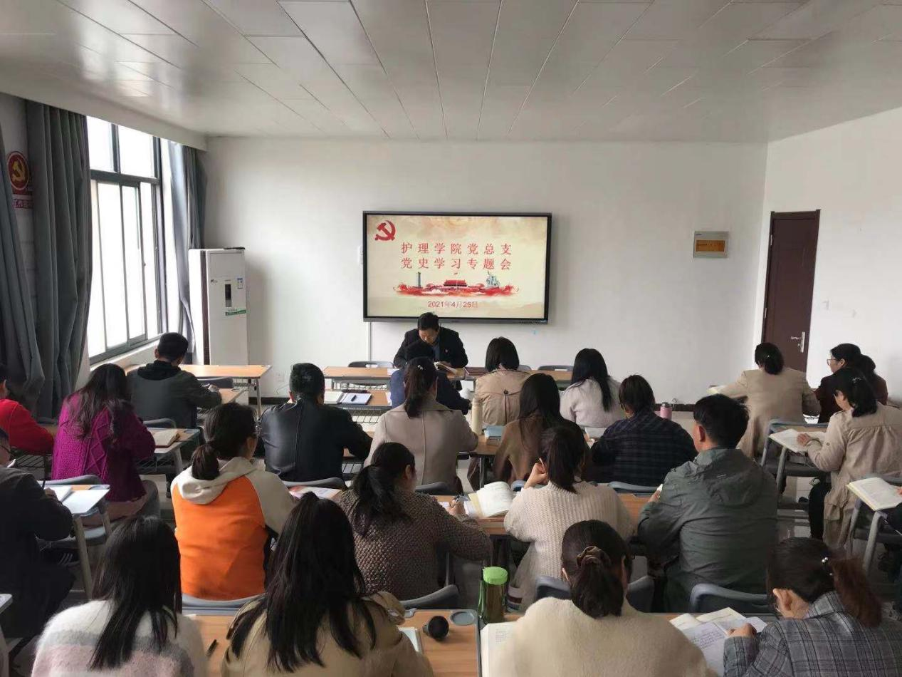 根据学校党史学习教育实施方案,2021年4月25日下午,护理学院党总支组织全体教师在A515党员活动室召开党史学习研讨会,集中学习讨论《论中国共产党历史—习近平》的部分内容:革命精神是党和国家的宝贵财富、总结党的历史经验,牢固树立“四个意识”、新时代中国共产党的历史使命等,会议由护理学院党总支书记杨明杰主持。