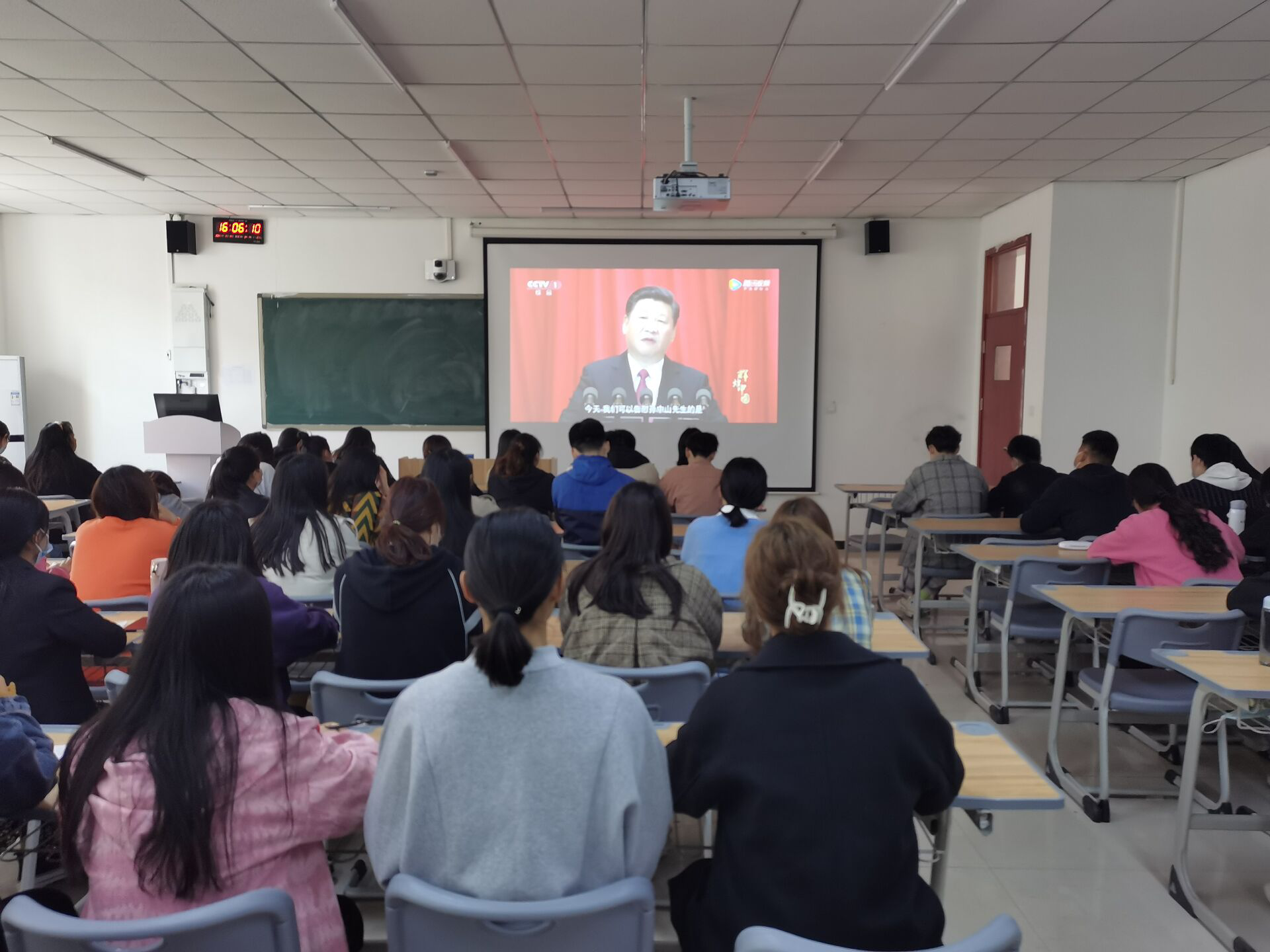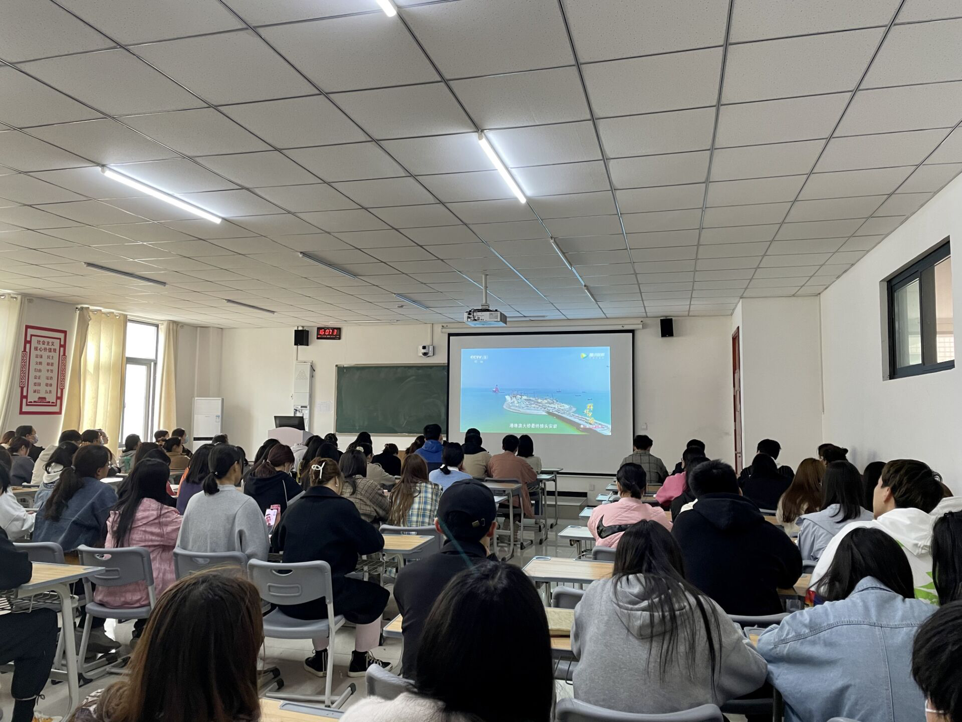 为加强学院积极分子对我国经济社会发展的深入了解,增强民族自豪感,实现中华民族伟大复兴的中国梦。2021年3月16日护理学院组织全体入党积极分子在sc楼205教室观看《辉煌中国》第一集《圆梦工程》。