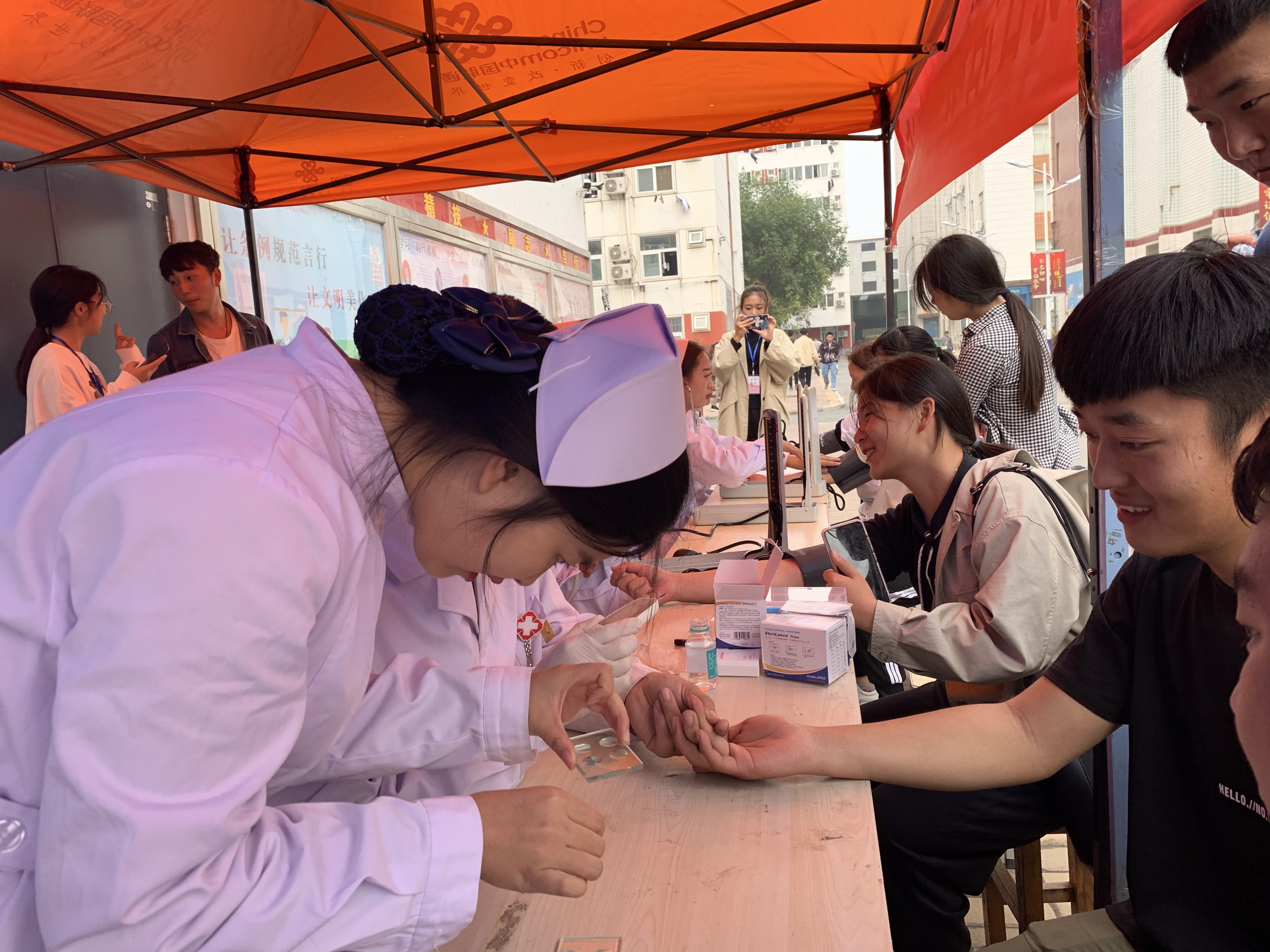 此次义诊活动为在校师生免费测量血压、测量血糖、测量血型,大家以最精神饱满的状态迎接前来检查的师生、耐心地为他们提供帮助,并在健康方面的问题提供了一对一的专业解答,提供切实可行的健康指导。