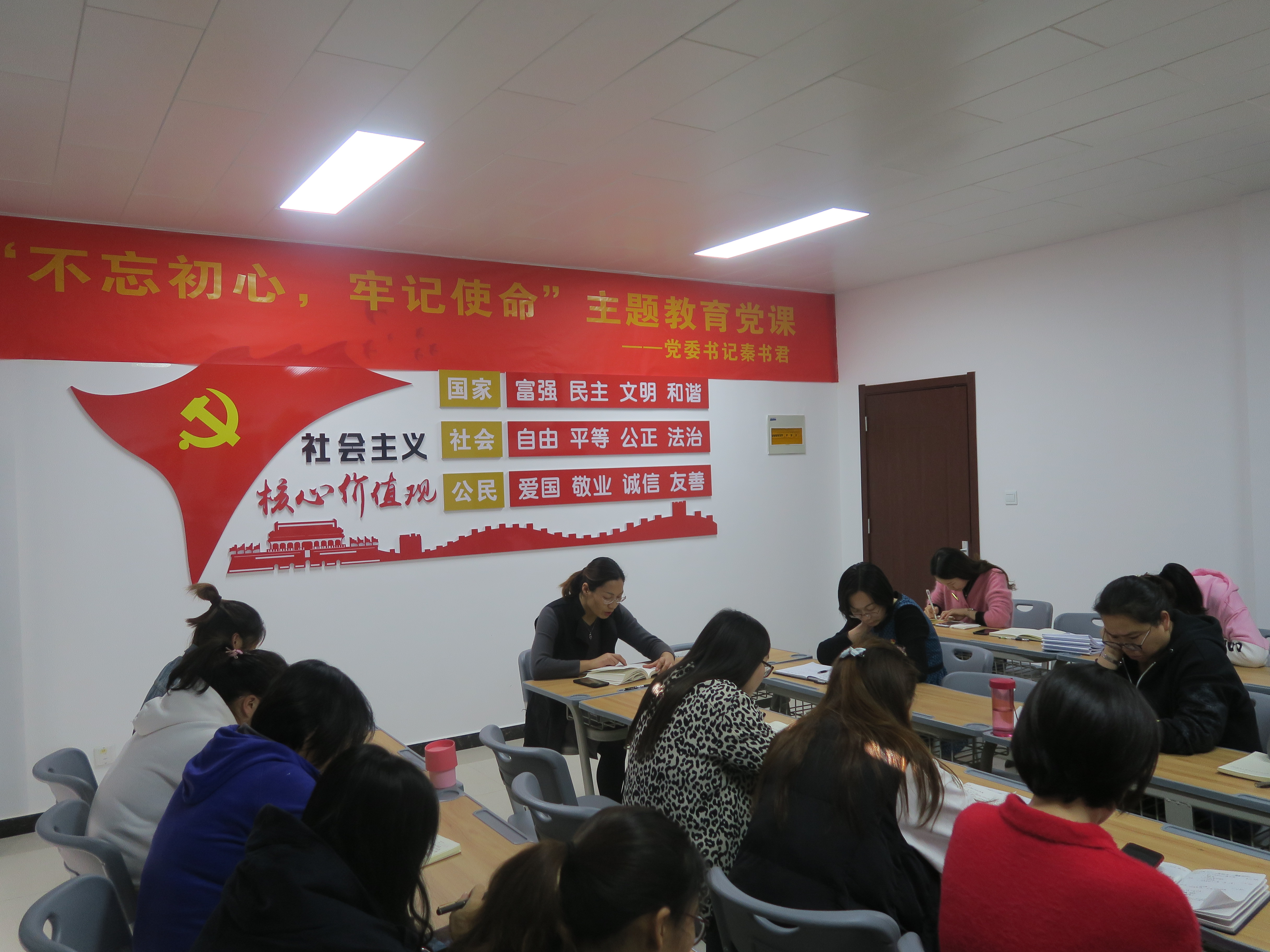 2019年10月29日下午,护理学院党总支组织全体教职工在A515集体学习“不忘初心、牢记使命”主题教育专题六《强化党的政治纪律和政治规矩》和专题七《加强党性修养》。