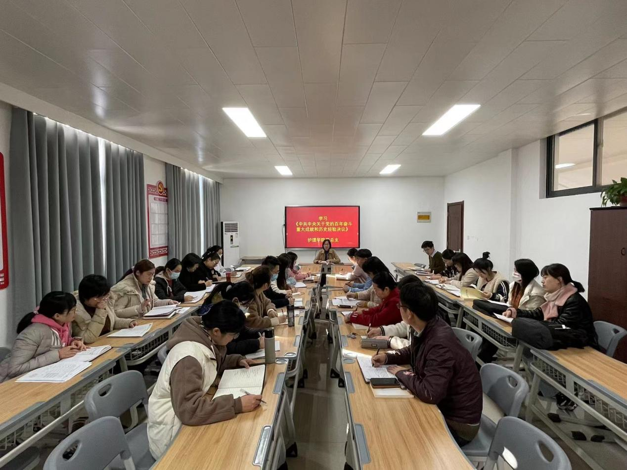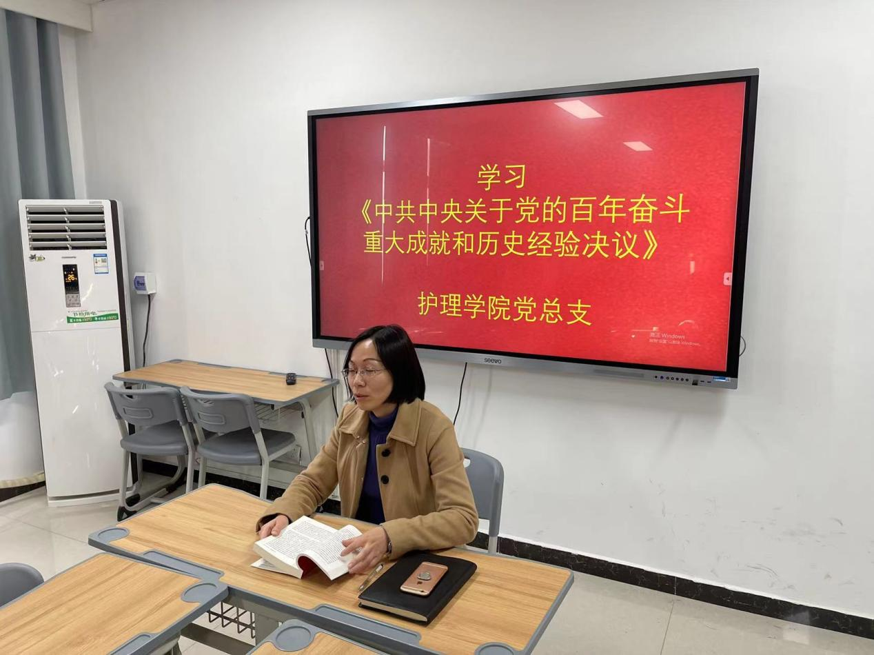 根据学校党史学习教育实施方案,2021年12月2日,护理学院党总支组织全体党员及教师在A515党员活动室召开党史学习教育专题研讨会,集中学习讨论《中共中央关于党的百年奋斗重大成就和历史经验的决议》部分内容,会议由护理学院副院长陈永惠主持。