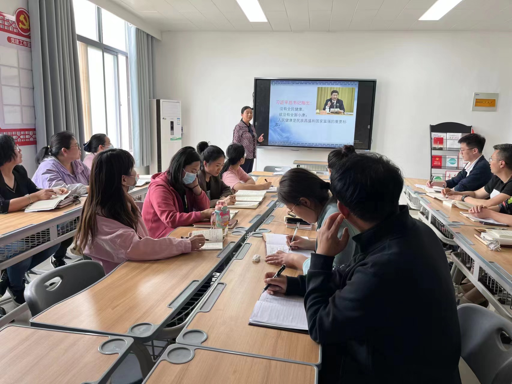 5月9日,护理学院党总支教工党支部在A515党员活动室召开学习健康中国战略主题教育集体学习研讨会,围绕习近平总书记的讲话“没有全民健康,就没有全面小康”。人民健康是民族昌盛和国家富强的重要标志”开展学习研讨交流。学习研讨会由护理学院党总支教工党支部书记王风云主持。