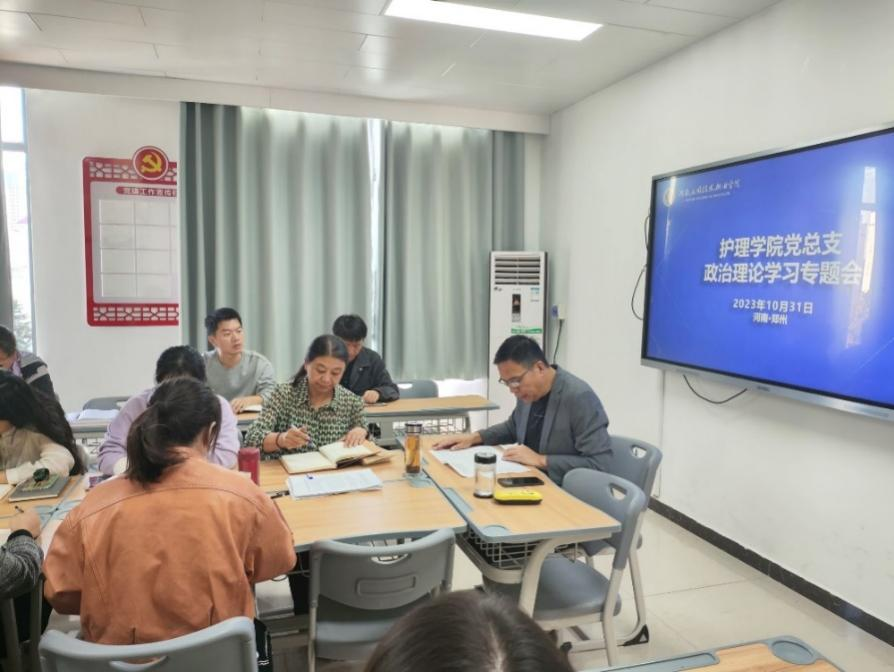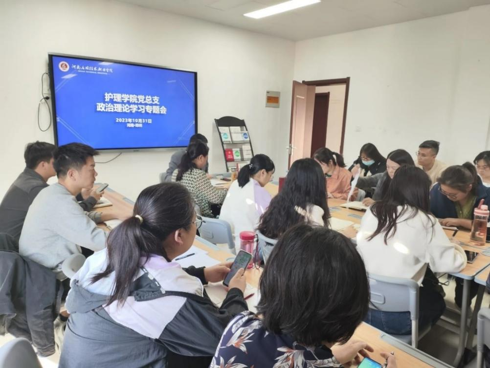 为深入开展学习贯彻习近平新时代中国特色社会主义思想主题教育,根据学校有关安排,2023年10月31日,护理学院党总支组织全体教职工在A515党员活动室召开专题会,集中学习《习近平对网络安全和信息化工作作出重要指示强调:深入贯彻党中央关于网络强国的重要思想大力推动网信事业高质量发展》《<求是>2023年第20期-习近平:开辟马克思主义中国化时代化新境界》《习近平在同中华全国总工会新一届领导班子成员集体谈话时强调:坚持党对工会的全面领导 组织动员亿万职工积极投身强国建设民族复兴伟业》《习近平在中共中央政治局第九次集体学习时强调:铸牢中华民族共同体意识 推进新时代党的民族工作高质量发展》等内容,会议由护理学院党总支书记杨明杰主持。