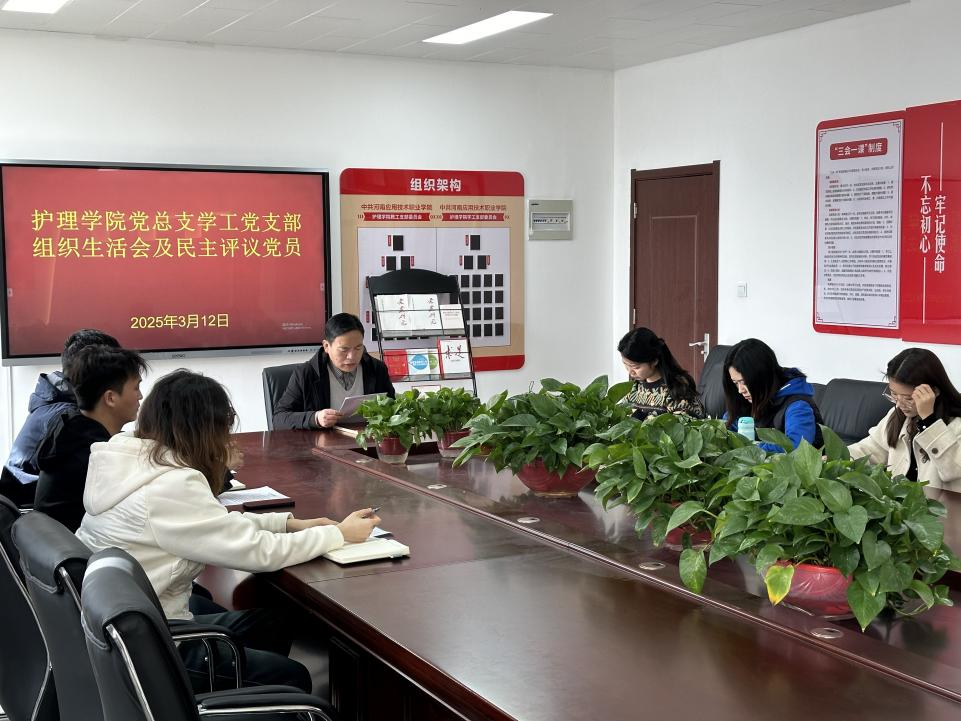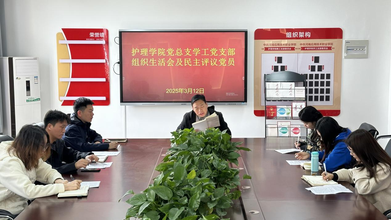 根据《中共河南应用技术职业学院委员会关于召开2024年度基层党组织组织生活会和开展民主评议党员的通知》要求,护理学院党总支学工党支部高度重视,于2025年3月12日在A515组织本支部全体党员召开组织生活会并民主评议党员。