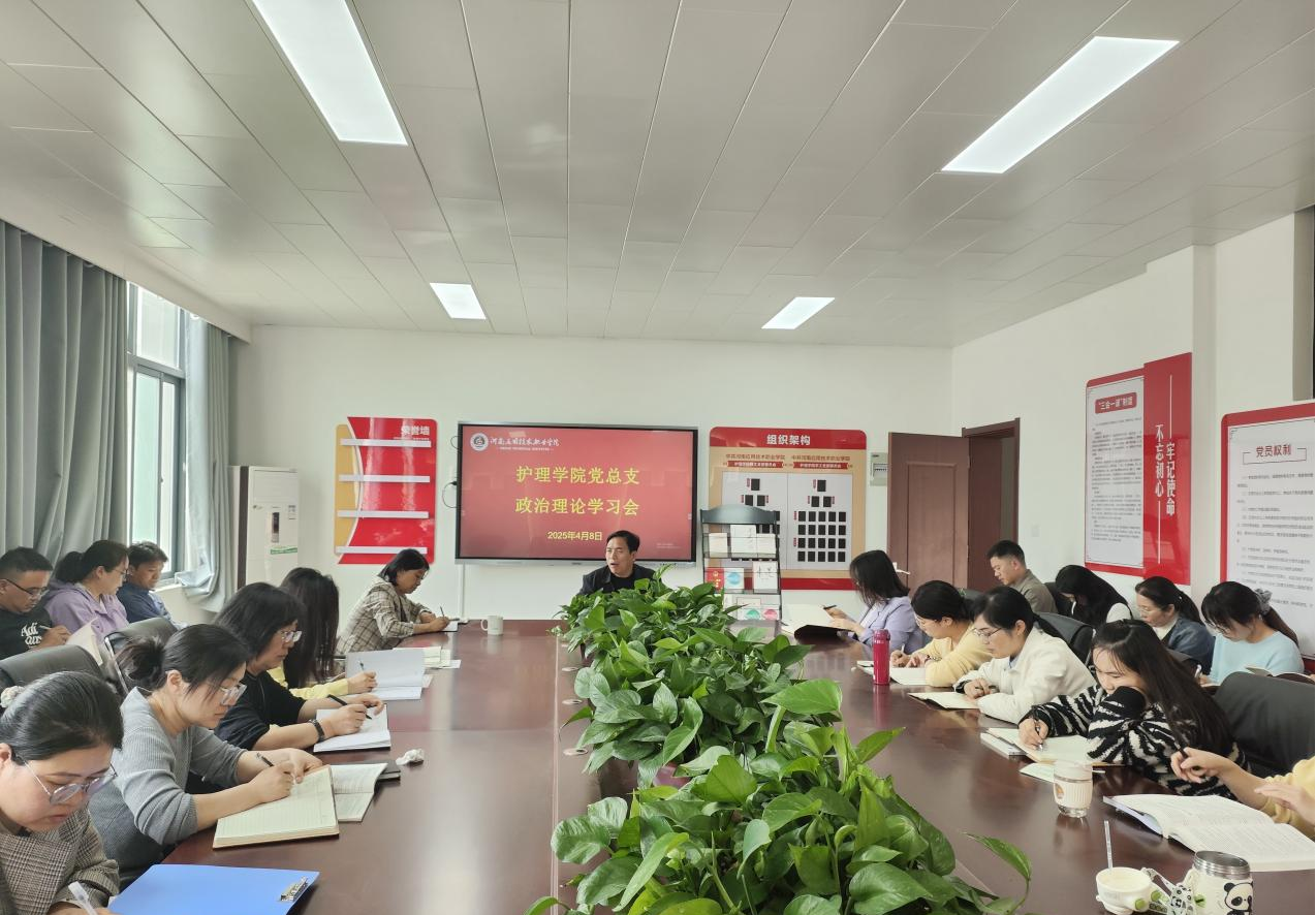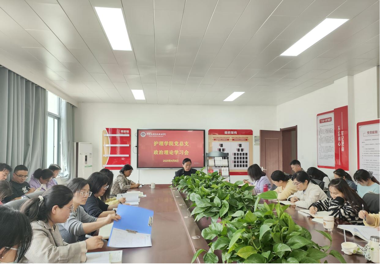 按照学校安排,2025年4月8日下午,护理学院党总支组织全体党员及教职工在A515会议室召开政治理论学习会议。本次会议由护理学院党总支书记杨明杰主持。