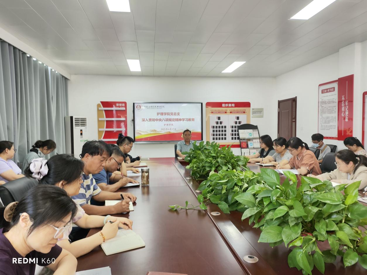 2025年6月17日下午,根据学校统一安排,护理学院党总支组织全体教职工在A515召开会议,开展深入贯彻中央八项规定精神学习教育。会议由护理学院党总支书记杨明杰主持。