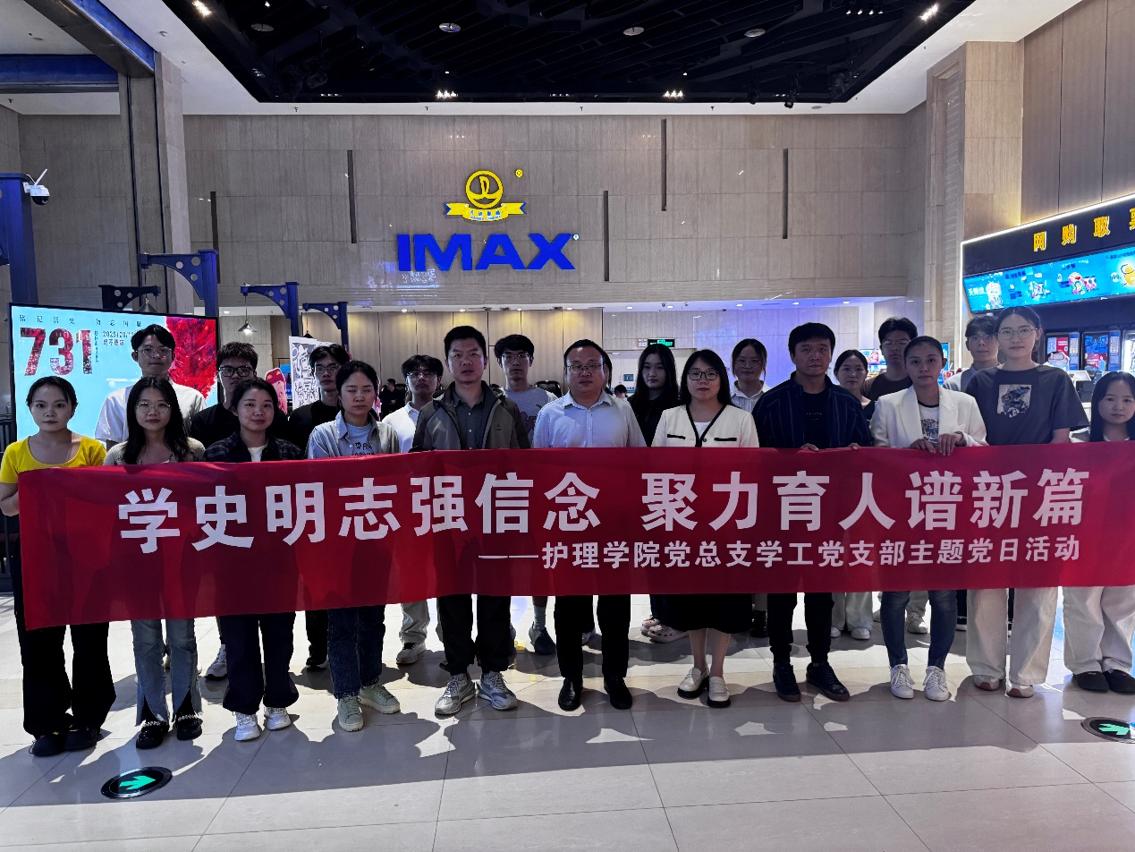 为深入学习贯彻习近平新时代中国特色社会主义思想,弘扬伟大抗战精神,2025年9月25日,护理学院党总支学工党支部开展主题党日活动,组织全体党员教师及部分入党积极分子观看电影《731》。