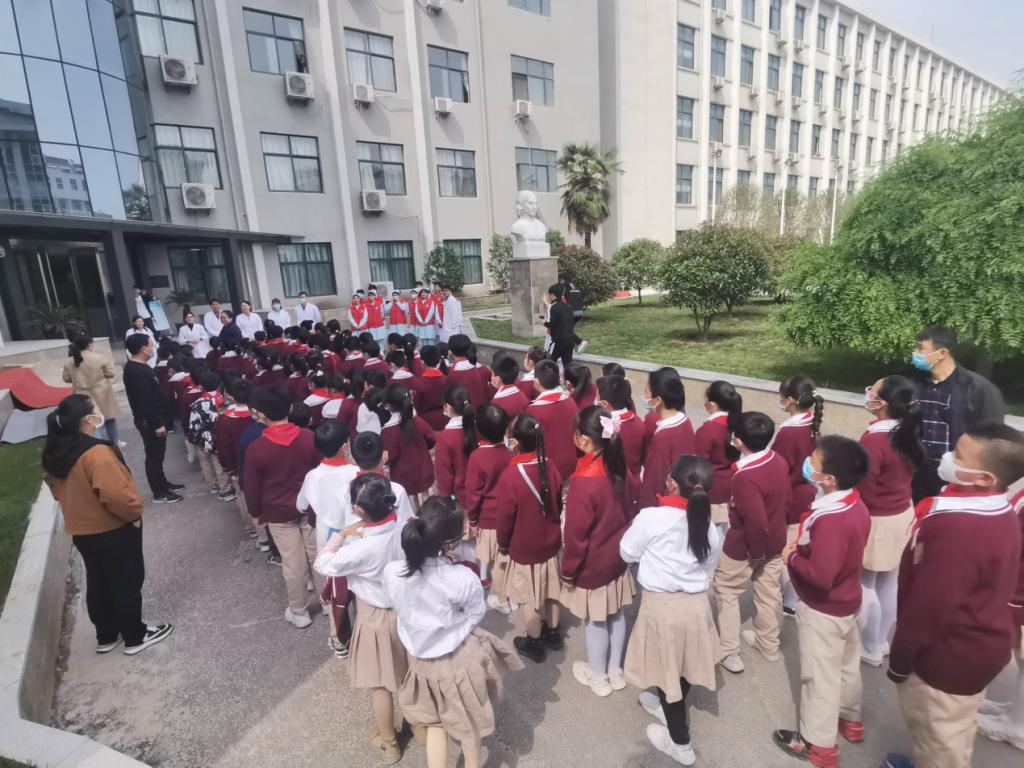 4月22日下午,护理学院组织中原区一五三小学百余名师生到我院科普教育基地——人体解剖虚拟仿真实训中心参观学习。护理学院部分老师和学生志愿者参加了此次科普教育活动的讲解和接待工作。