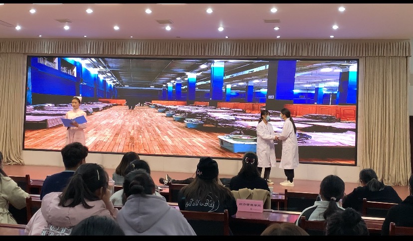 比赛开始前,主持人一一介绍了参加本次比赛的老师及评委,同时也分别介绍了比赛规则和评分标准。本次比赛全校共有10支参赛队伍入围决赛,展示形式丰富多彩,涵盖内容广泛,涉及疫情期间的“抗疫英雄”感人故事,“疫情期间身边的好人好事”,“歌颂抗疫期间普通百姓的抗疫过程”等多方面内容。参赛团队围绕大赛主题,通过真实贴切的视角、精湛的表演,给各位评委老师以及现场观众留下了深刻的印象,博得现场阵阵掌声。护理学院参赛作品《逆行》,以朗诵加表演的形式,生动形象地展现了疫情期间医生、志愿者、普通百姓间感人至深的抗疫故事。最终,经过激烈的竞争,以及评委们严格评审,作品《逆行》荣获二等奖。