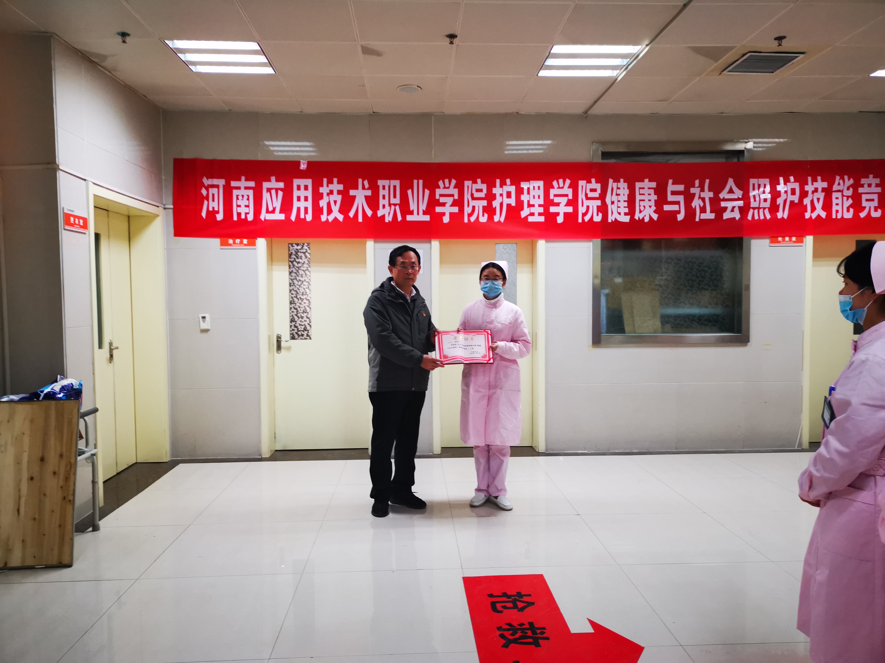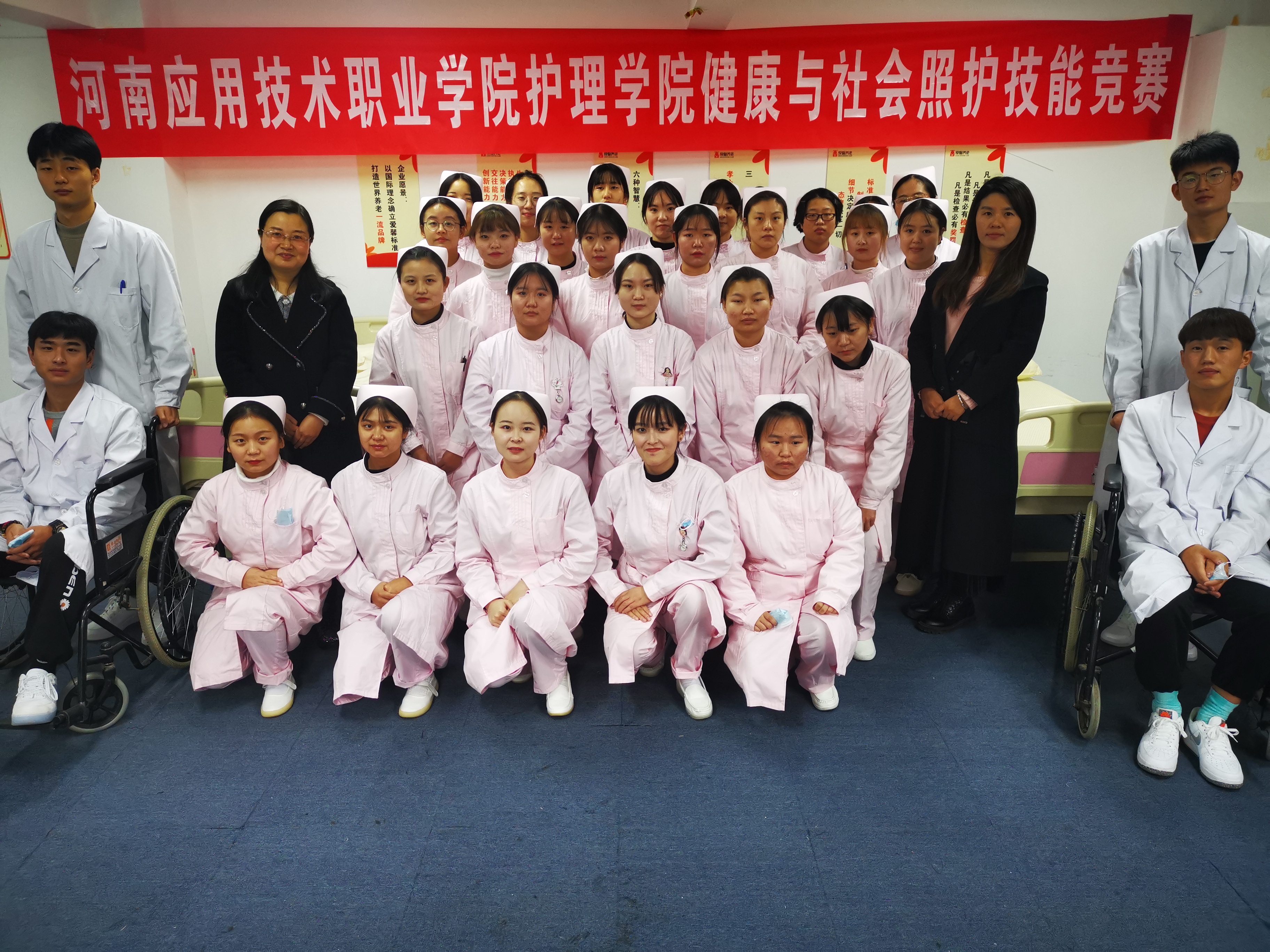 2020年11月27日上午10点,河南应用技术职业学院首届健康与社会照护竞赛在河南爱馨养老集团展馆2楼大智慧教室顺利举行。护理学院老年保健与管理专业32名学生参加了此次比赛。本次技能比赛以世界技能大赛健康与社会照护赛项为引领,“以赛促教、以赛促改、赛教融合、赛训融合”,对接国家、行业等标准,以培养选拔国家技能大赛选手和促进职业教育高质量发展为目标,比赛设定医院、长期照护中心、日间照护中心以及家庭四个竞赛模块,不但能够提升参赛者健康与社会照护需要的知识和技能,同时提升其组织管理能力、沟通和人际交往能力、解决问题等能力等。