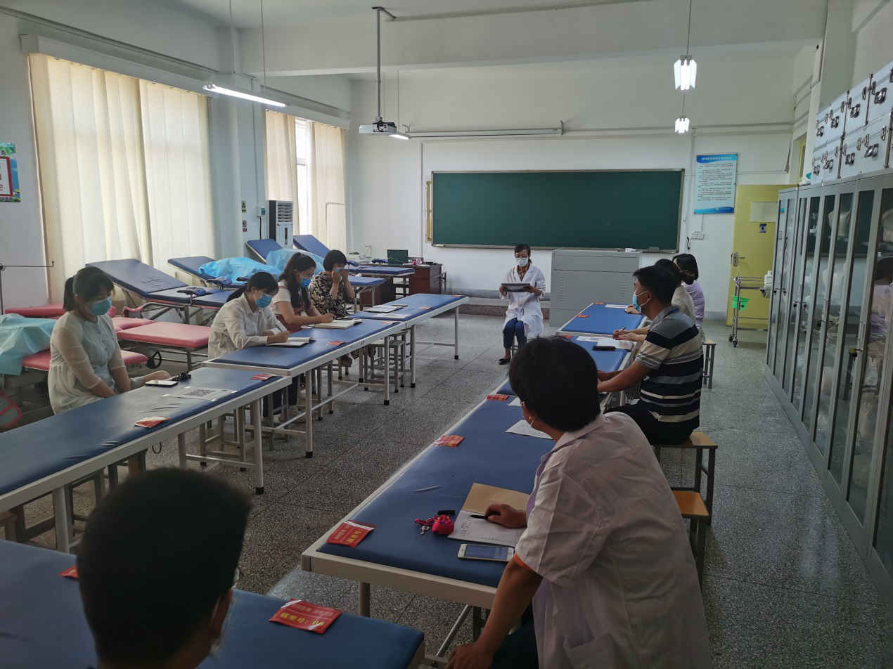 首先,医务室董会节医生向大家传达上级关于发热病人的规范处理办法,给值班教师培训体温异常学生的问诊要求、处理方案和注意事项;对医务值班人员提出总体要求,对发热学生登记表的提出明确的书写要求。