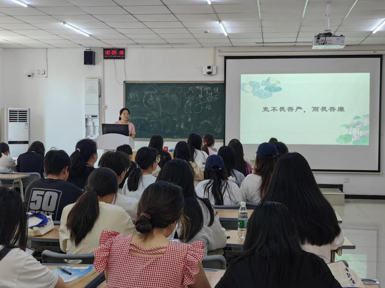 孟醒老师以“吏不畏吾严,而畏吾廉”开篇,通过列举包拯、海瑞、焦裕禄、孔繁森等人的廉洁故事,启示同学们廉政自律要从小事做起,坚决克服侥幸心理。此外,孟醒老师还结合自身实际,并从高校教育的角度出发,指出同学们对廉洁修身应该具备预警性、渐近性和层次性。