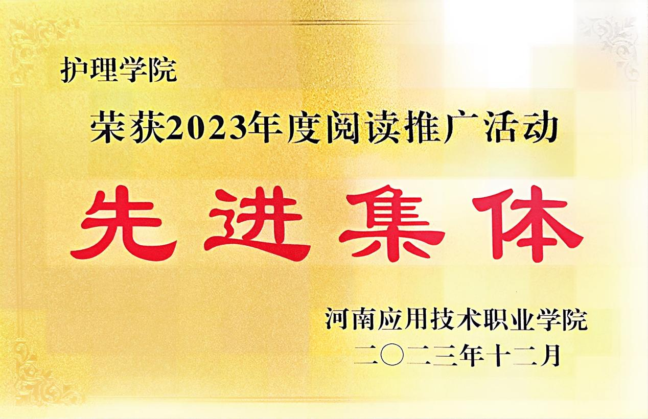 为了深入贯彻落实党的二十大提出的“传承中华优秀传统文化,深化全民阅读活动”的决策部署,护理学院师生积极参与2026世界杯图书馆于2023年4月—11月开展的阅读推广系列活动,并荣获2023年度阅读推广活动“先进集体”荣誉称号。