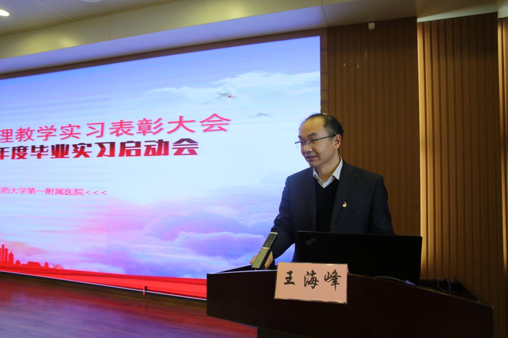 河南中医药大学第一附属医院王海峰院长作为东道主充分肯定了2022年的实习教学工作,表彰了一年来在各实习岗位学习能力突出的优秀实习生和疫情期间表现优异的实习生。