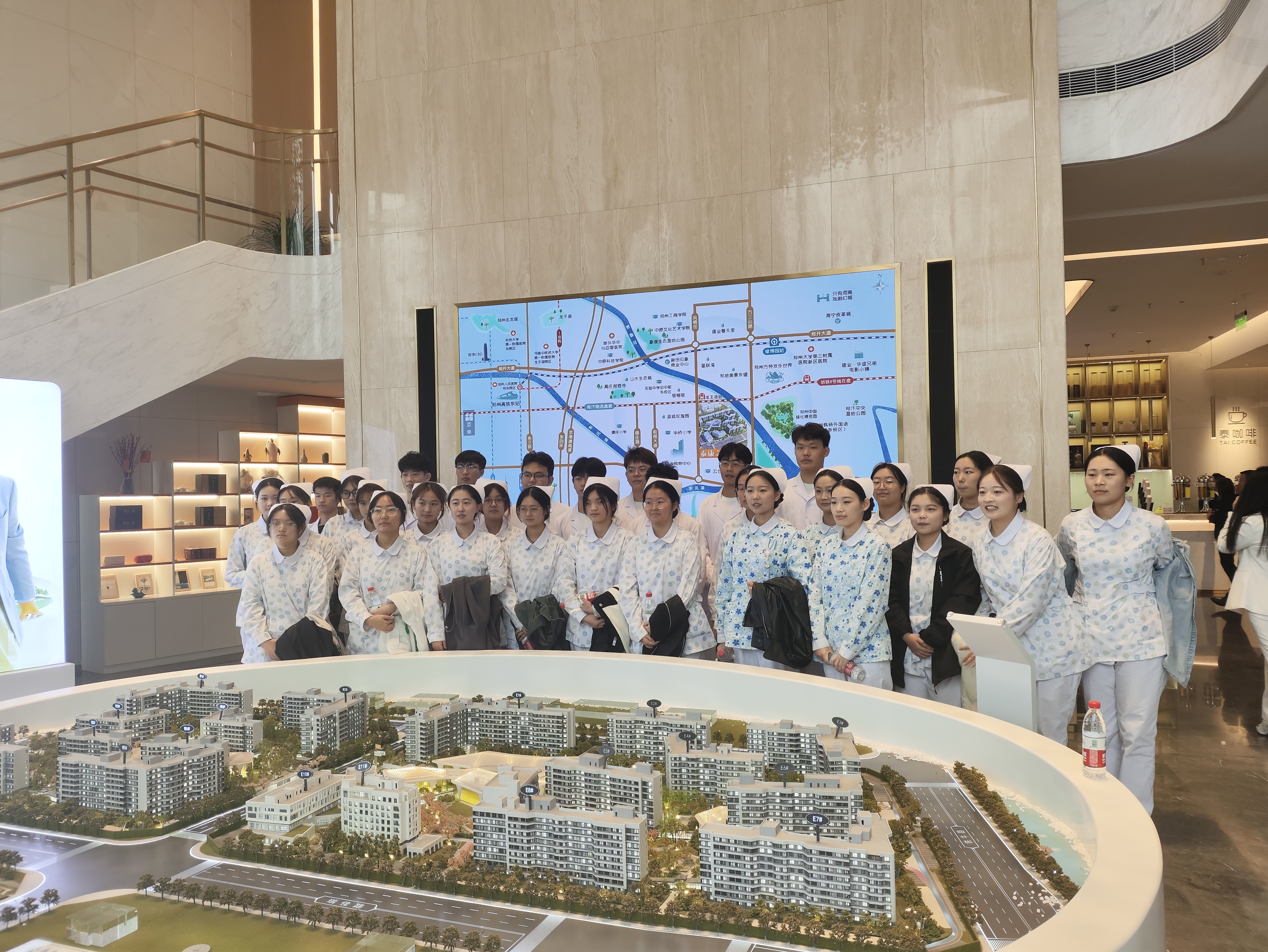 2023年11月3日上午河南应用技术职业学院护理学院党总支书记杨明杰、院长王风云、校企合作与就业处副处长张万仑等一行带22级老年保健与管理专业全体学生赴中牟市泰康之家豫园访企拓岗。