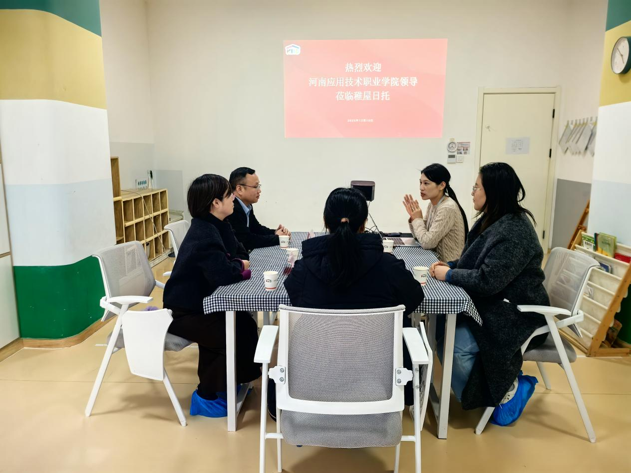 座谈中,张笑洋介绍了稚屋日托 “生活照护 + 科学启蒙” 服务体系,坦言行业亟需兼具理论与实践能力的复合型人才,并介绍了与其他院校的校企合作方式。张忠勇回应指出,校企合作是实现人才培养与行业需求精准对接的关键路径,学院高度重视与稚屋日托的合作契机,愿在人才培养、师资共享、课程共建等方面深度协同,根据企业岗位标准制定人才培养方案,助力学生实现从校园到职场的平稳过渡。双方就此深入研讨,初步确定了校企合作形式从实习基地向订单班、产业学院方向深层次开展。李伟宏、孟醒还对课程优化与专业衔接提出了建议。