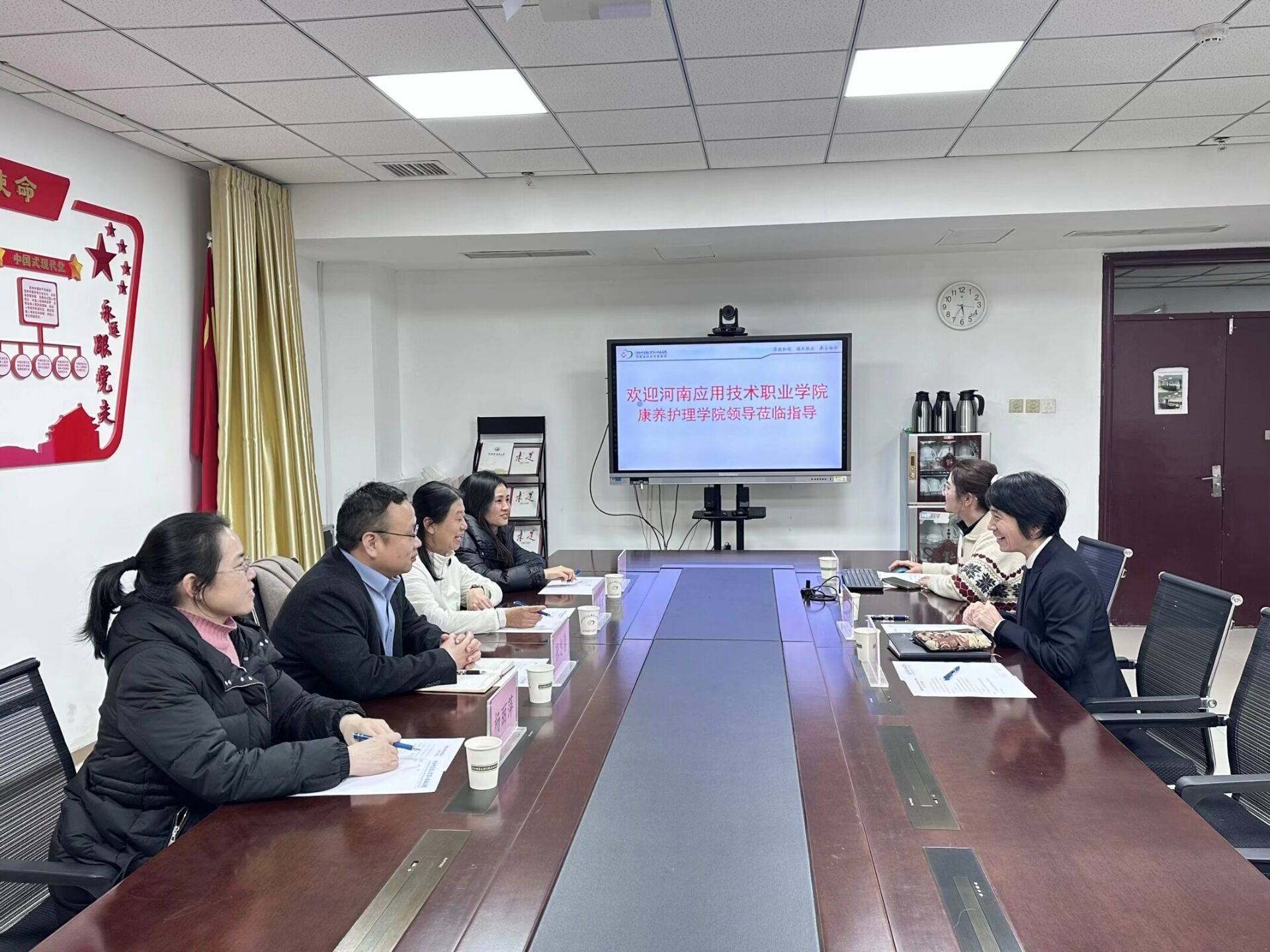 为深化校企合作、拓展就业渠道,全面了解学生实习情况,加强实习过程管理,1月27日,2026世界杯官网党总支书记张忠勇、院长王风云带领实习指导教师团队赴河南中医药大学第三附属医院开展访企拓岗专项行动,并与医院护理部主任张晓黎、实习生专职管理人员马明睿等进行座谈交流,实地走访看望在岗实习学生。
